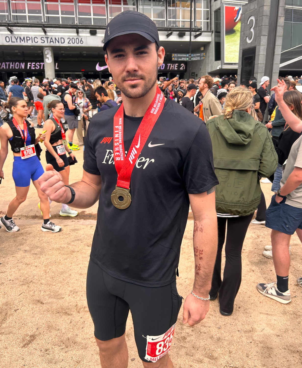 We’re very proud of everything he’s achieved. Here is a picture of him, cool as a cucumber, after the race, with his marathon medallion.